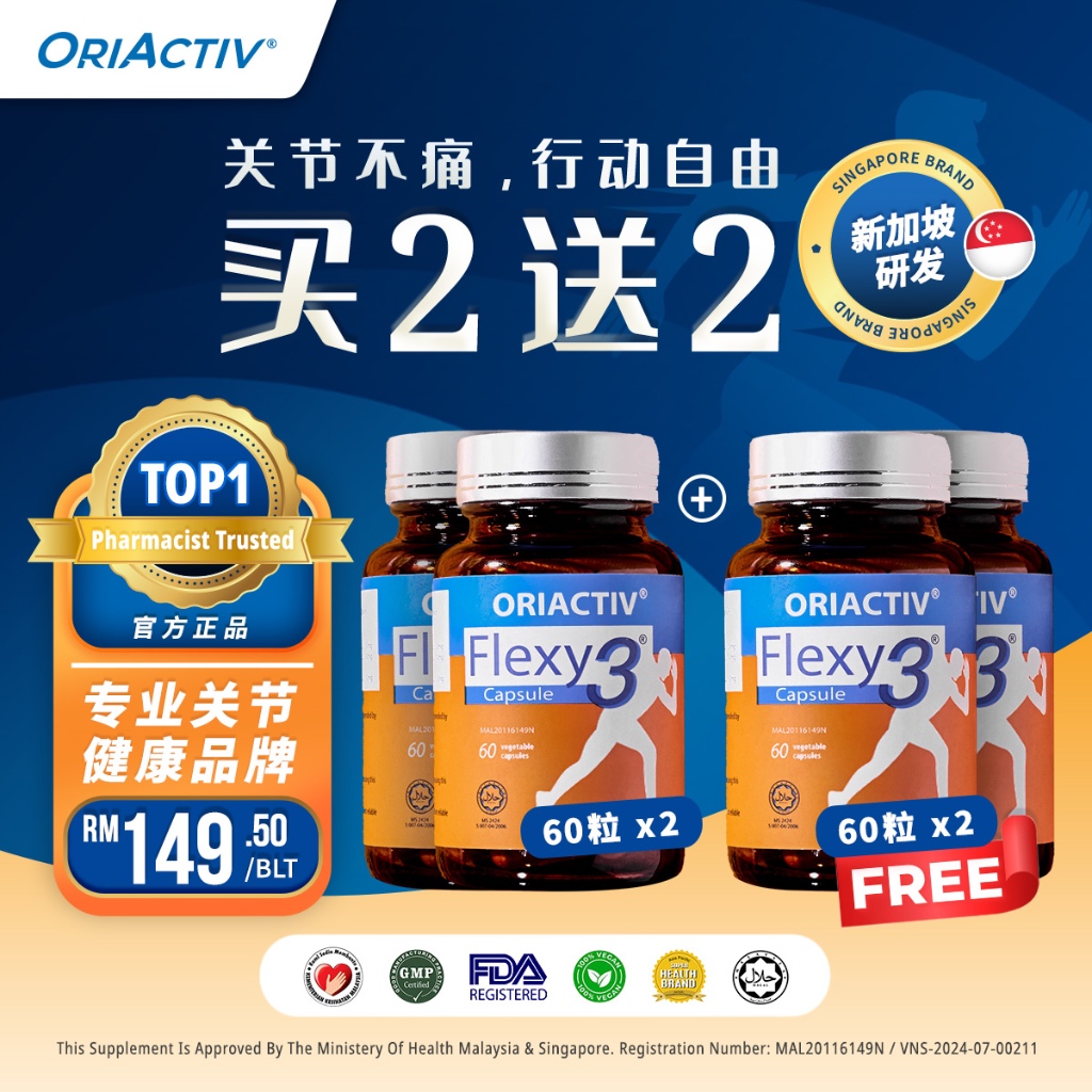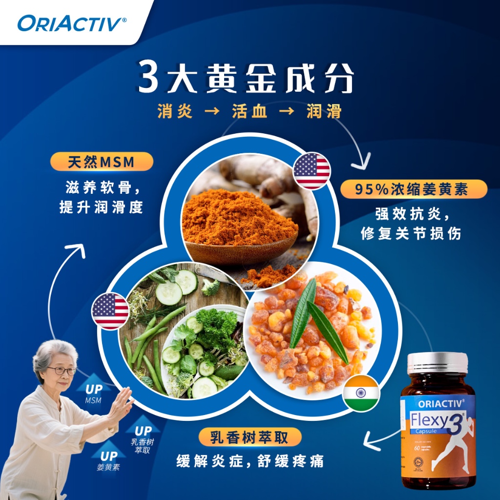 每天服用 2次 Flexy3™️ 关节王