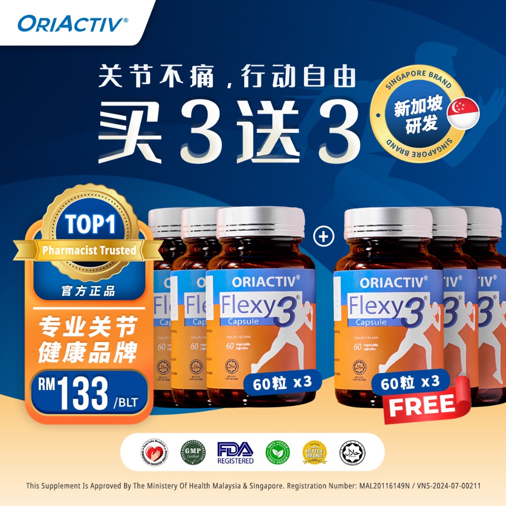 Adjunctive Therapy for Osteoarthritis & Joint Cartilage Health 500 mg x 60 Vega Capsules 【Each Capsule Contains:】 ☘️Boswellia Serrata Gum Extract 100mg ☘️Curcuma Longa (Turmeric) Rhizome Extract 150mg ☘️MSM 250mg 【Oriactiv Flexy3】 是获得了严格认证 ✅ 马来西亚药物管理局 KKM 批注号码: MAL20116149N (代表通过政府承认的) 同时拥有GM ...了解更多